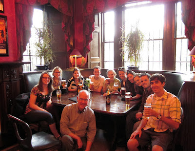 Addendum to Monday on Tuesday morning: Anna Barth had said she’d deliver students to the Theatre Royal Bar, and she did, for which I thank her very much! There were ten at first, then twelve (at which point we joked about it being the last supper!) and then at about 5”45 two more joined us. I was flattered by the attention and touched at this gathering on my last trip to Edinburgh, and we all had a very nice chat about traveling while in London, and on other subjects as well – more o’ that!
